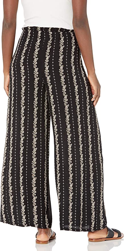 Wide-Leg Palazzo Pant Floral Stripe/ Black